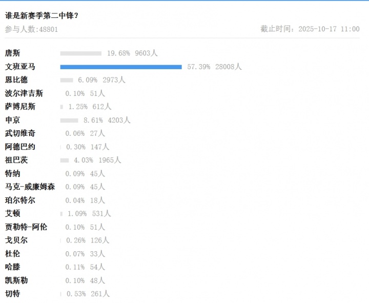 『吧友評選』NBA新賽季第二中鋒:文班亞馬