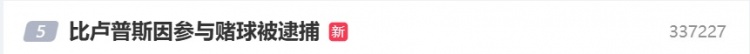 比盧普斯因賭球被捕詞條直接沖上微博熱搜第五名,并且還在上漲中。
