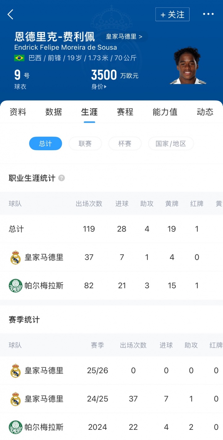 即使是對陣萊萬特和凱拉特的比賽,恩德里克仍坐在替補(bǔ)席,即便球隊(duì)有巨大領(lǐng)先優(yōu)勢,他甚至都沒有獲得熱身機(jī)會。恩德里克夢想著跟隨巴西參加2026世界杯,但缺乏出場時間可能會讓他與國家隊(duì)大名單漸行漸遠(yuǎn)。最近一期巴西隊(duì)名單,恩德里克則再次落選。