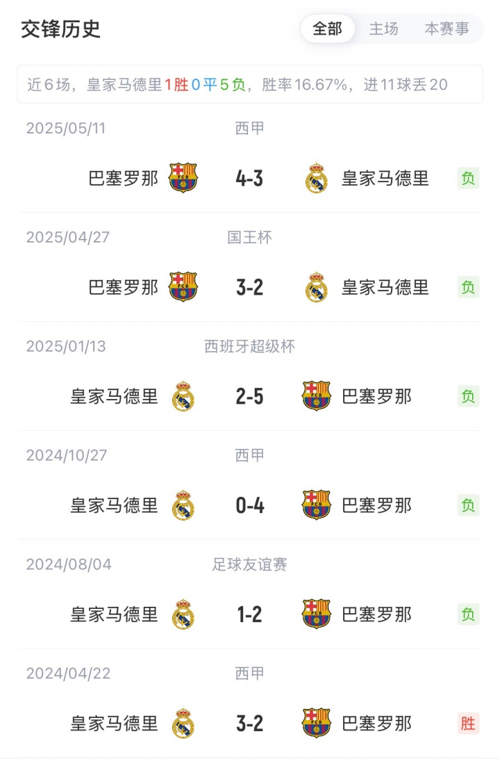 聯賽方面,皇馬8勝1負領跑,領先巴薩2分。本場皇馬若取勝,將把領先優勢擴大到5分;巴薩若取勝則將反超皇馬登頂。