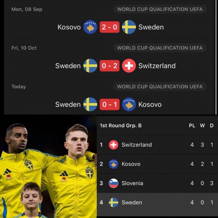 10月14日訊 世預賽賽場,瑞典0-1不敵科索沃,瑞典無緣直接晉級世界杯。