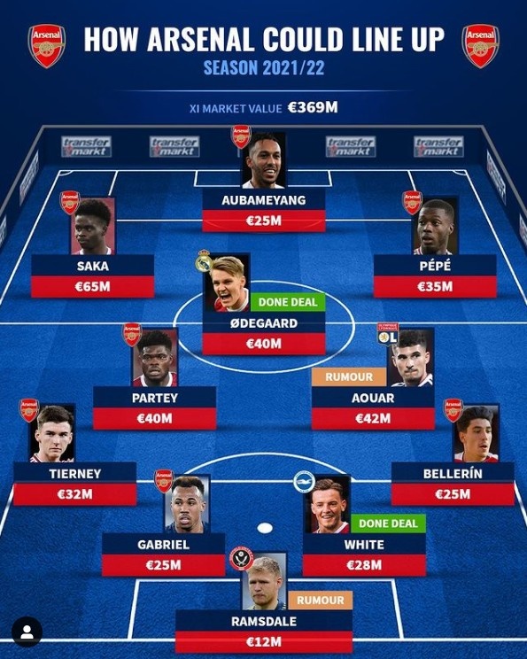 2021年,曾有報道稱阿森納、曼聯(lián)、利物浦、尤文等歐洲豪門有意簽下彼時23歲的奧亞爾。德轉(zhuǎn)也一度將奧亞爾列入槍手新賽季的首發(fā)預測中。前里昂總監(jiān)小儒尼尼奧在接受采訪時也表示阿森納曾試圖用錢+貢多齊的方式交換奧亞爾,但遭到里昂方面的拒絕。